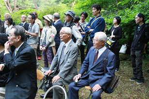 榎本家からは、四代目の隆充さんと奥様、それに五代目の隆一郎さんにご参加頂きました。隆充さんは「ここにご参加されている方々は、ご遺族として参加されているが、私どもの武揚は生き残ってしまったので、申し訳なく肩身が狭い」と、軽いジョークの後「旧幕府軍の遺体は、柳川熊吉さんら函館の心ある人たちによって埋葬され、後に碧血碑が建てられた。函館碧血会の方々には、一五〇年もの間休むことなく供養して頂いて感謝している。」と述べられました。