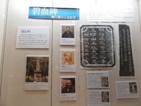 「碧血碑・柳川熊吉と碧血碑」のコーナーでは、碧血碑裏面の漢詩拓本および榎本武揚・柳川熊吉などの碧血碑に関わった人たちや碧血碑に関する資料などを紹介していました。こちらの期間は、昨年七月二十八日から本年の碑前祭が終るまでの六月末日まで展示する予定にしています。
