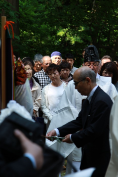 祭礼が進み、佐藤豊副会長が「祭文」を奉じた後に、参列者全員が碧血碑に玉串を奉奠しました。最後に佐藤副会長から「本年は、旧幕府軍犠牲者の百五十回忌という節目の年を迎えました。私たちは、箱館戦争を通じてこの時代の歴史を刻んだ人たちを祀って来ました。この事を、これからも日本の文化、函館の文化として後世に受け継いでいきたい。」とあいさつし、碑前・慰霊祭を終了しました。