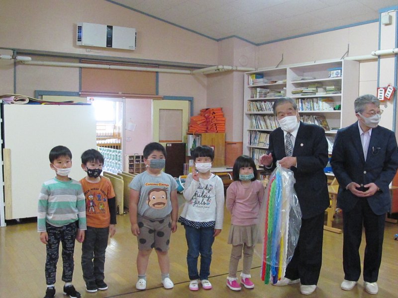 | 「折り鶴」を函館碧血会に託す園児たち (写真;菊池博雅役員) |