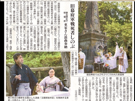| 碧血碑前で奉納された浪曲「五稜郭始末記」 (写真;大坂光彦事務局員) |